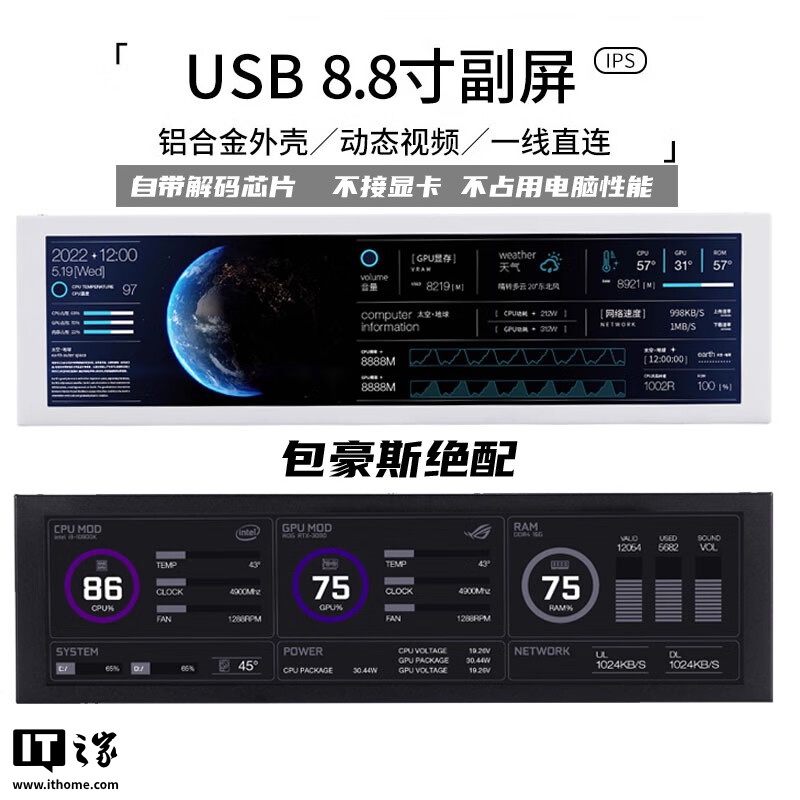 IT之家获悉,这款副屏整体尺寸为 237 x 73 x 13 mm,匹配一块 1920x480 分辨率 60Hz 面板,亮度 500 尼特,配备了一个可调节高度与倾斜角度的安装支架,同时也支持使用标准风扇螺丝安装在机箱内外,或直接使用胶水 / 自行安装磁铁将其固定在任何平面上。