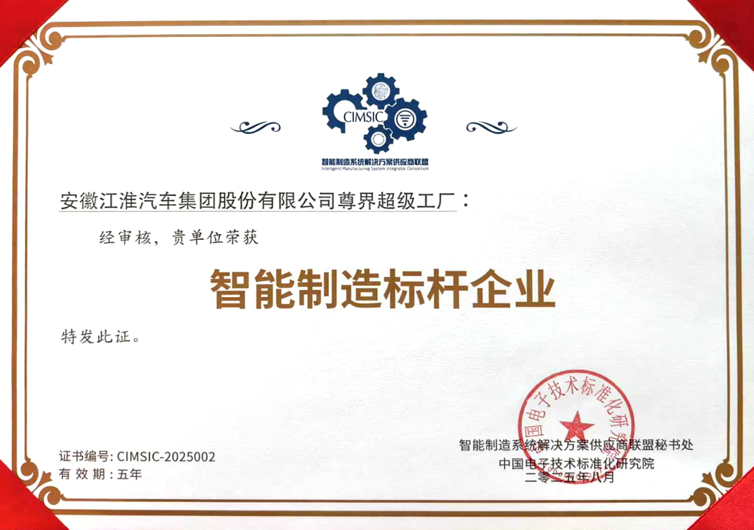 IT之家 8 月 25 日消息,2025 年 8 月 22 日,由工信部指导的新一批国家级智能制造标杆企业授牌仪式在北京举办,江汽集团尊界超级工厂凭借全链路数字化生产线、AI 质量检测系统和工业互联网平台等创新成果入选,是此次入选国家级智能制造标杆企业的唯一整车企业。