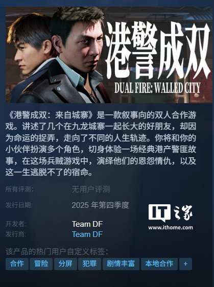 IT之家 8 月 26 日消息,Steam 商店日前上架了一款《港警成双:来自城寨》游戏,显示游戏将于 2025 年第四季度发售。