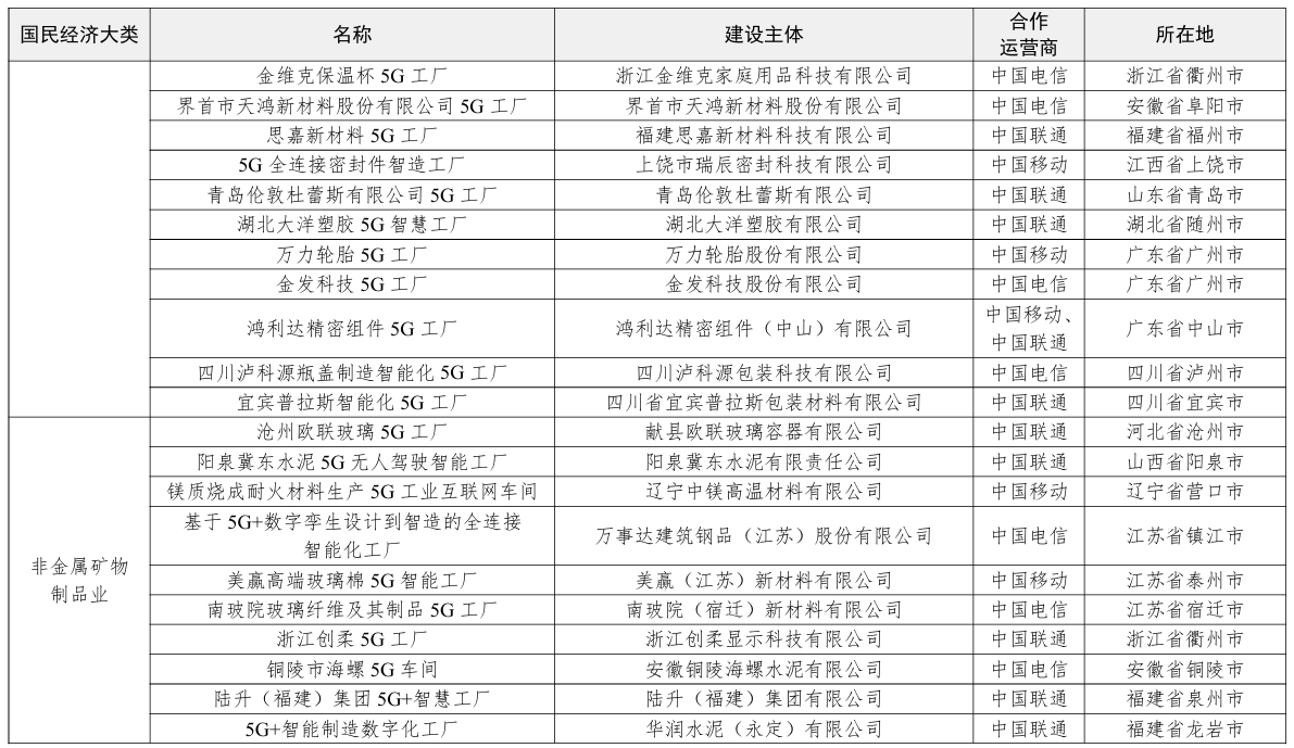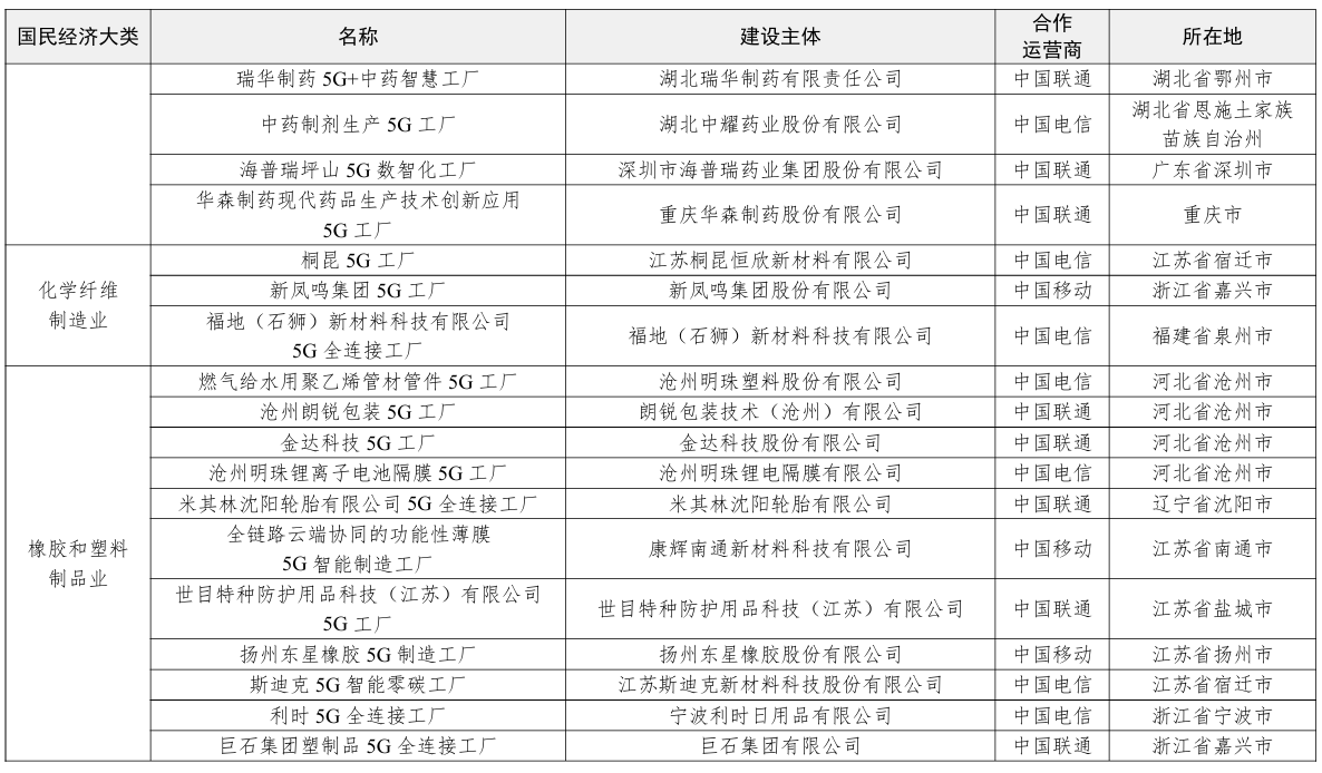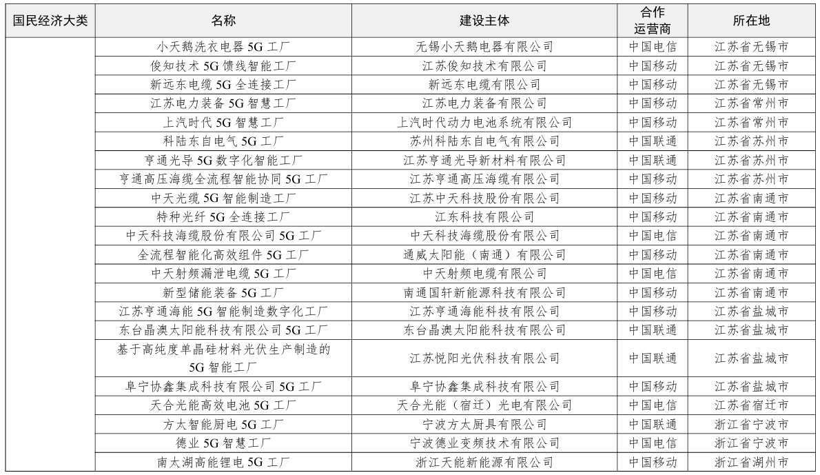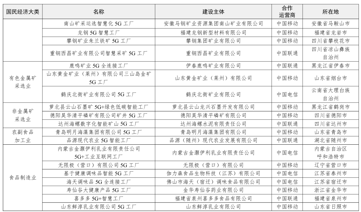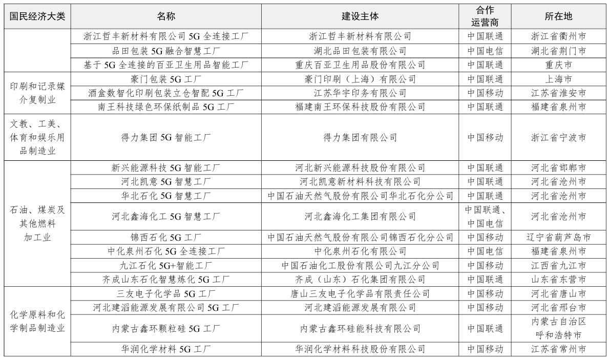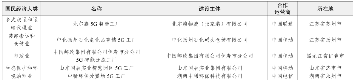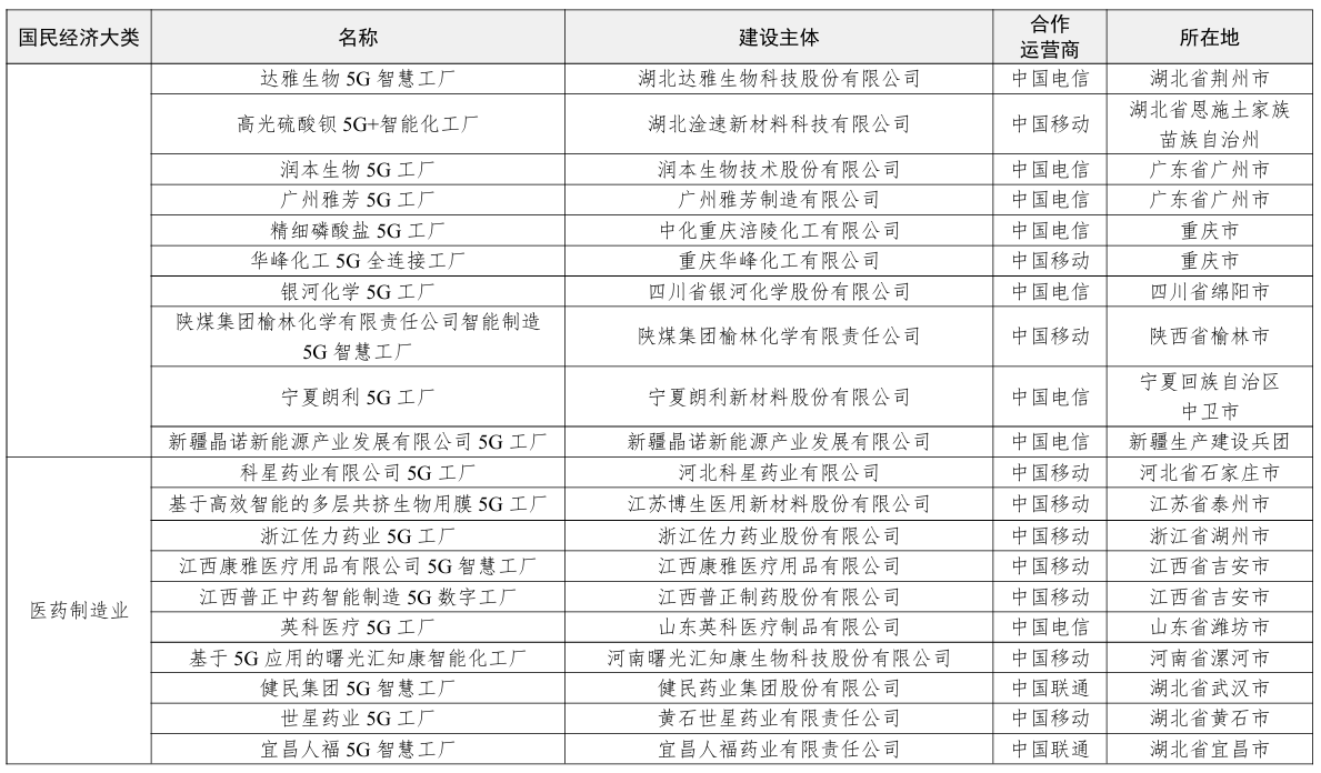 计算机、通信和其他电子设备制造业大类中,中兴长沙 5G 全连接工厂、OPPO 重庆智能终端创新示范 5G 工厂等入选。