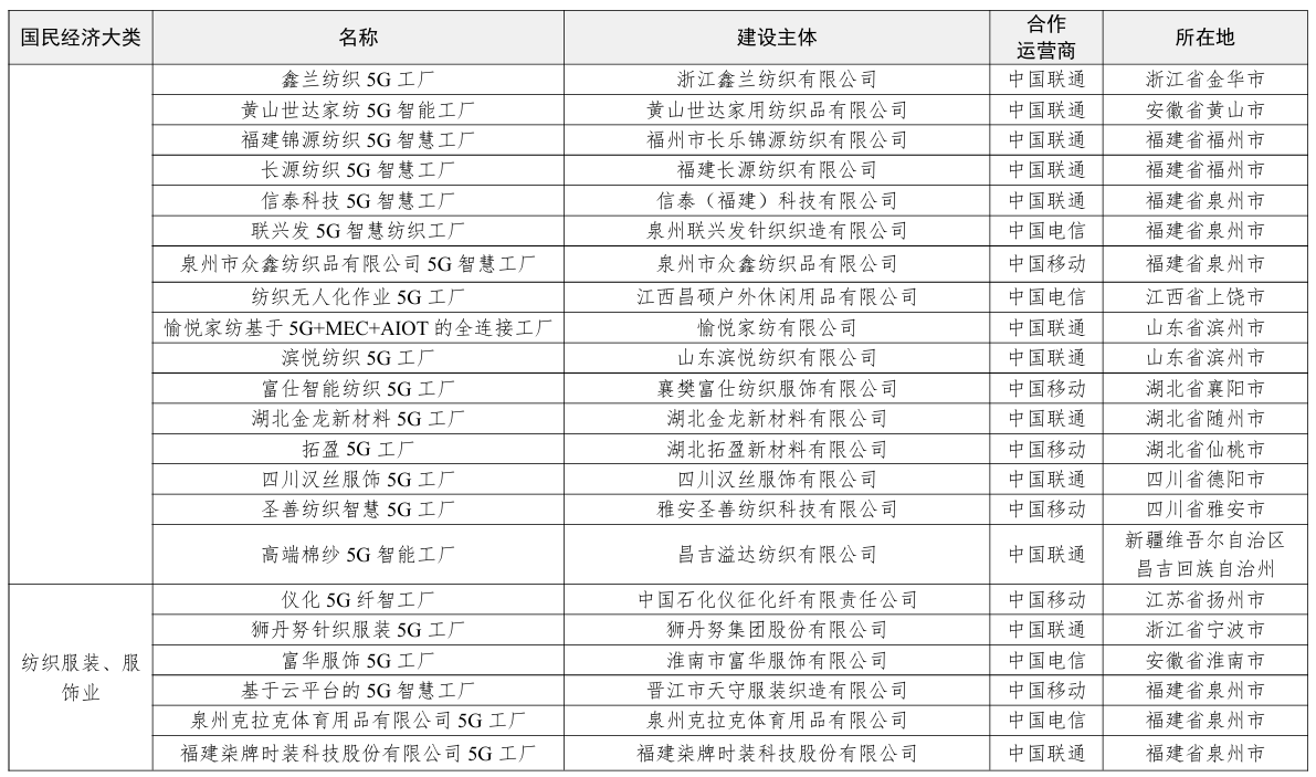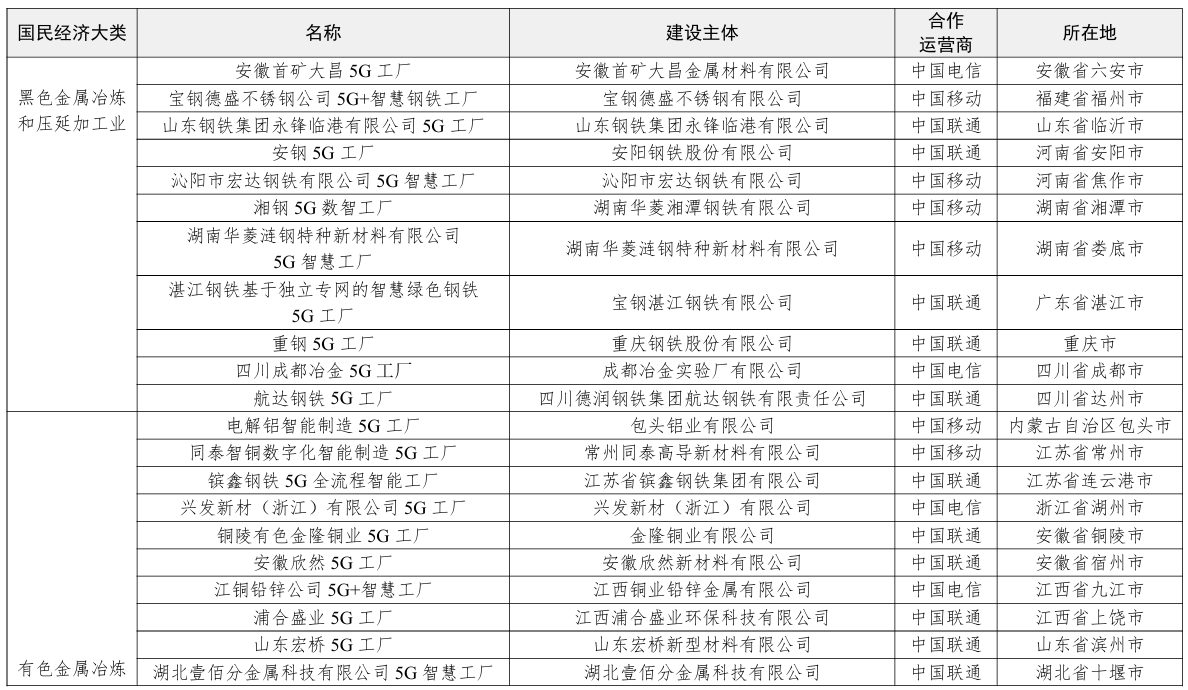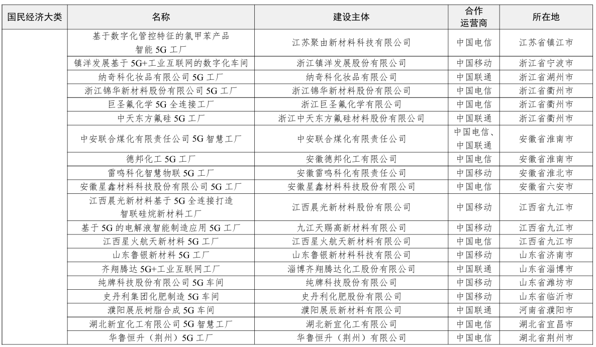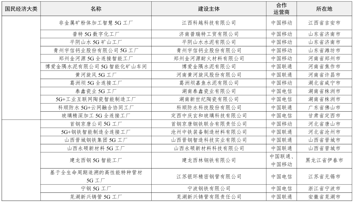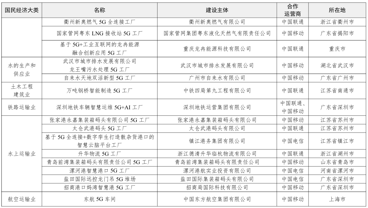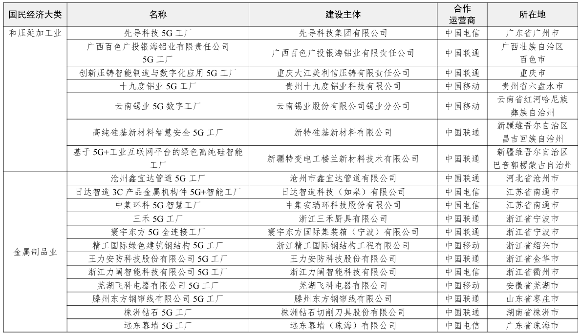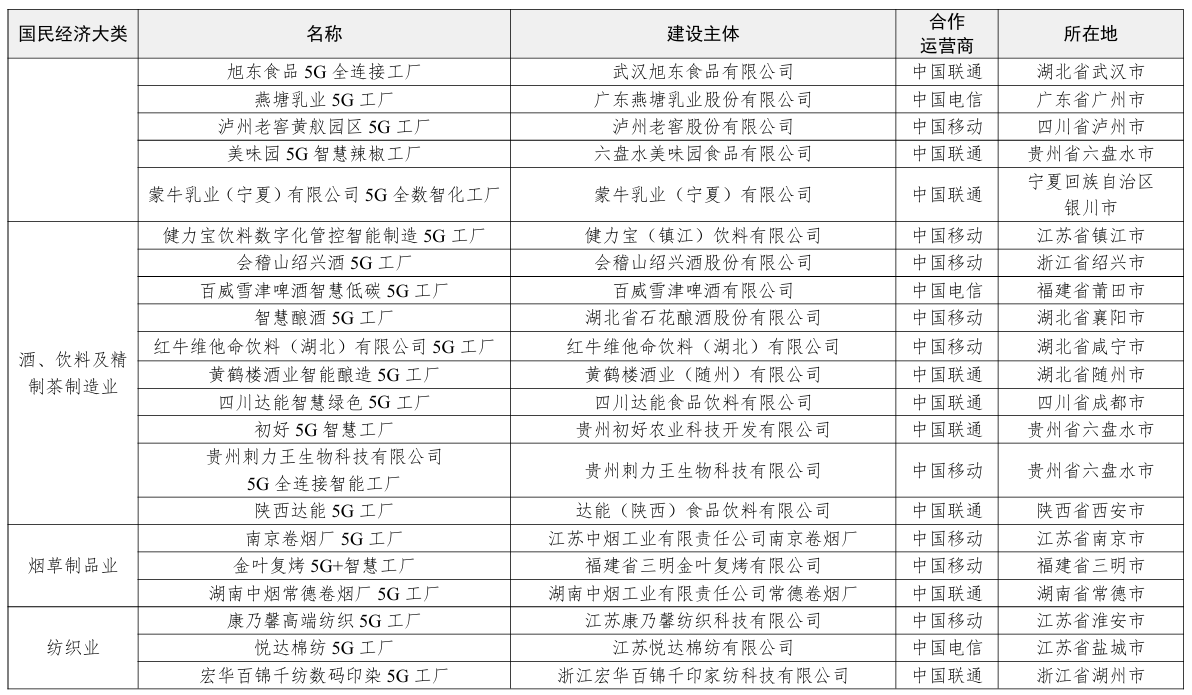 计算机、通信和其他电子设备制造业大类中,中兴长沙 5G 全连接工厂、OPPO 重庆智能终端创新示范 5G 工厂等入选。