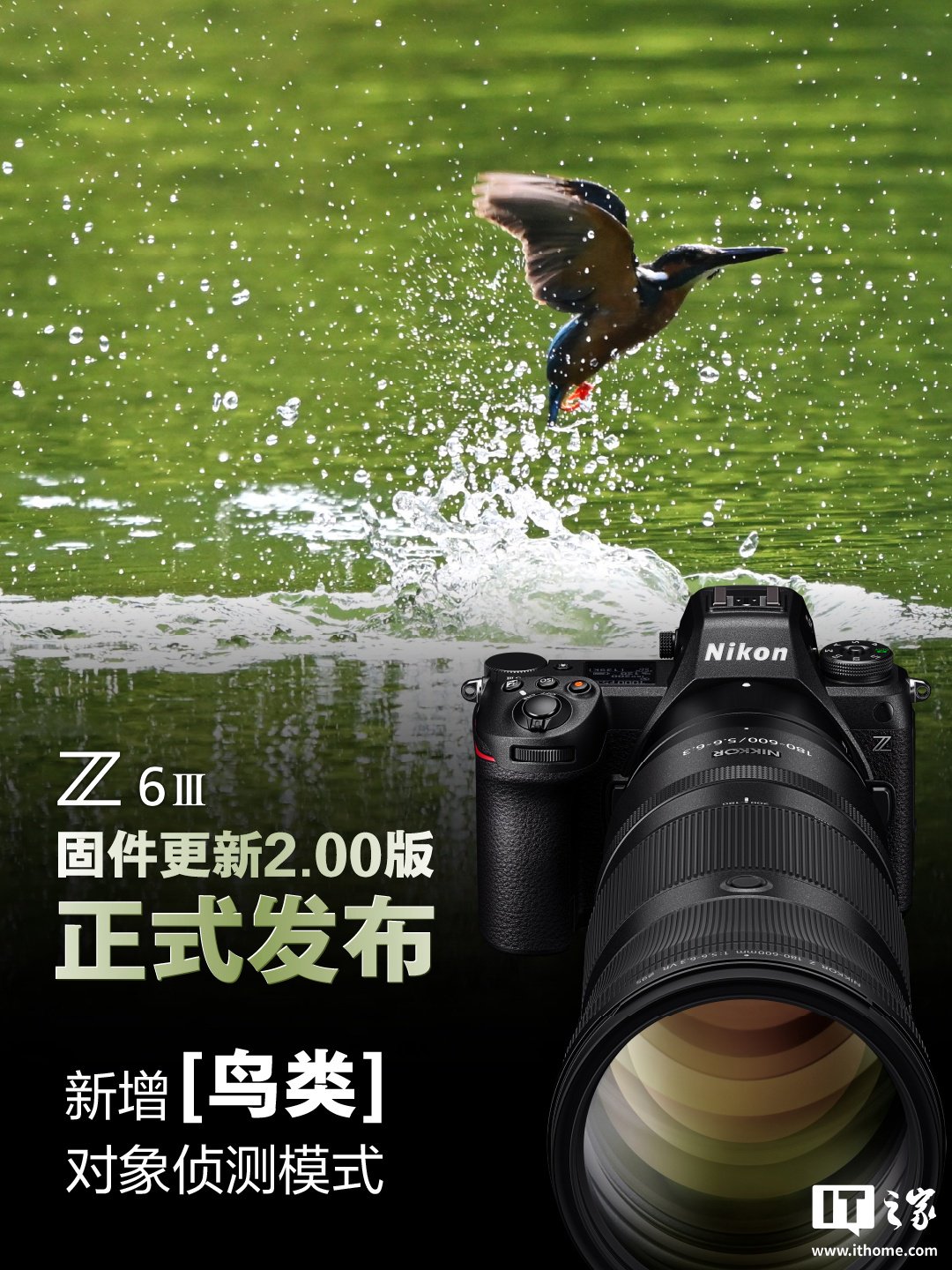 IT之家 8 月 27 日消息,尼康 Z6III 全画幅微单数码相机今日推出全新 2.0 版本固件升级,新增单独的鸟类识别,照片拍摄中新增自动拍摄。