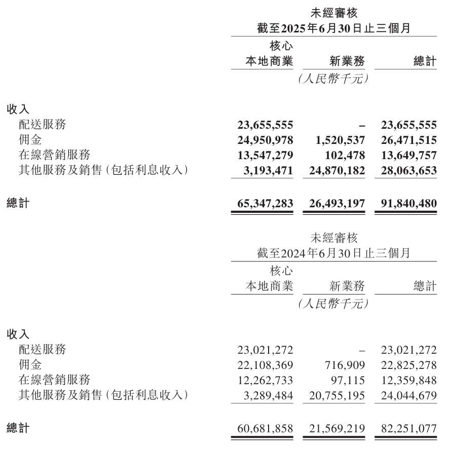 收入由 2024 年同期的人民币 823 亿元增长 11.7% 至人民币 918 亿元。由于外卖行业竞争激烈,美团核心本地商业分部的经营溢利同比大幅下降至人民币 37 亿元。同时,由于海外扩张,新业务分部的经营亏损同比扩大至人民币 19 亿元。