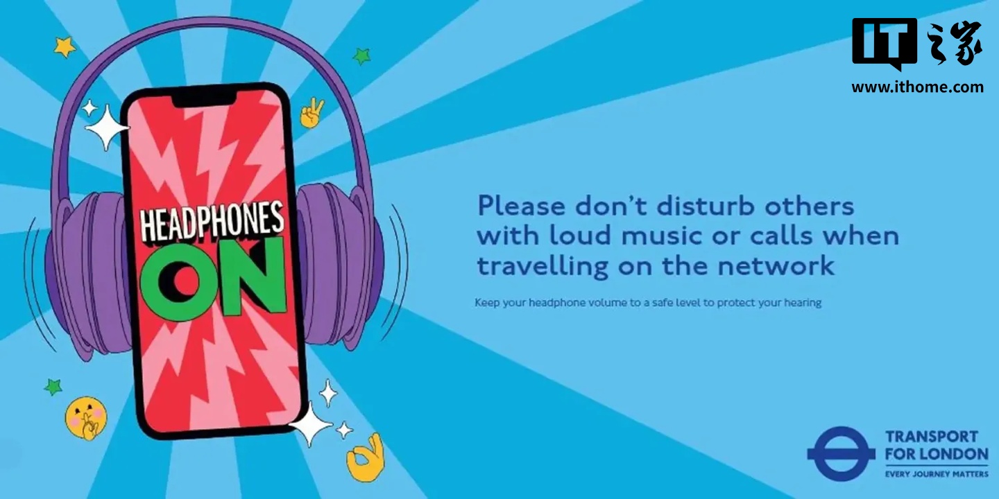 IT之家 8 月 28 日消息,有些道理本应显而易见,比如“在公共交通上用手机听音乐或看视频时,记得戴耳机”。但常坐公共交通工具的人都知道,现实并非如此。如今,伦敦已决定采取行动,通过一场公益宣传活动来改善这一问题。