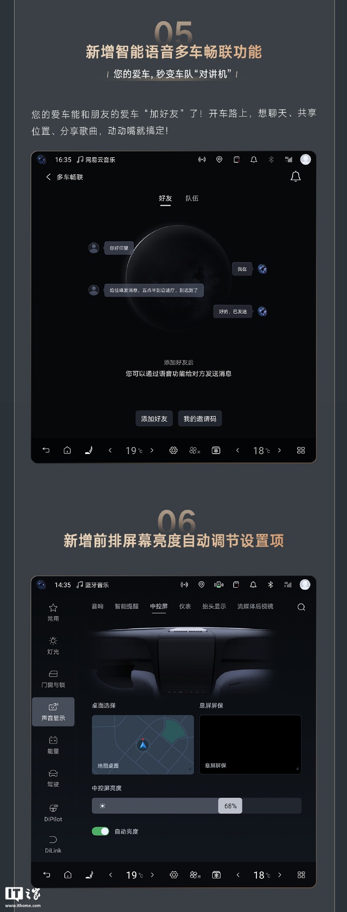 六、新增前排屏幕亮度自动调节设置项: