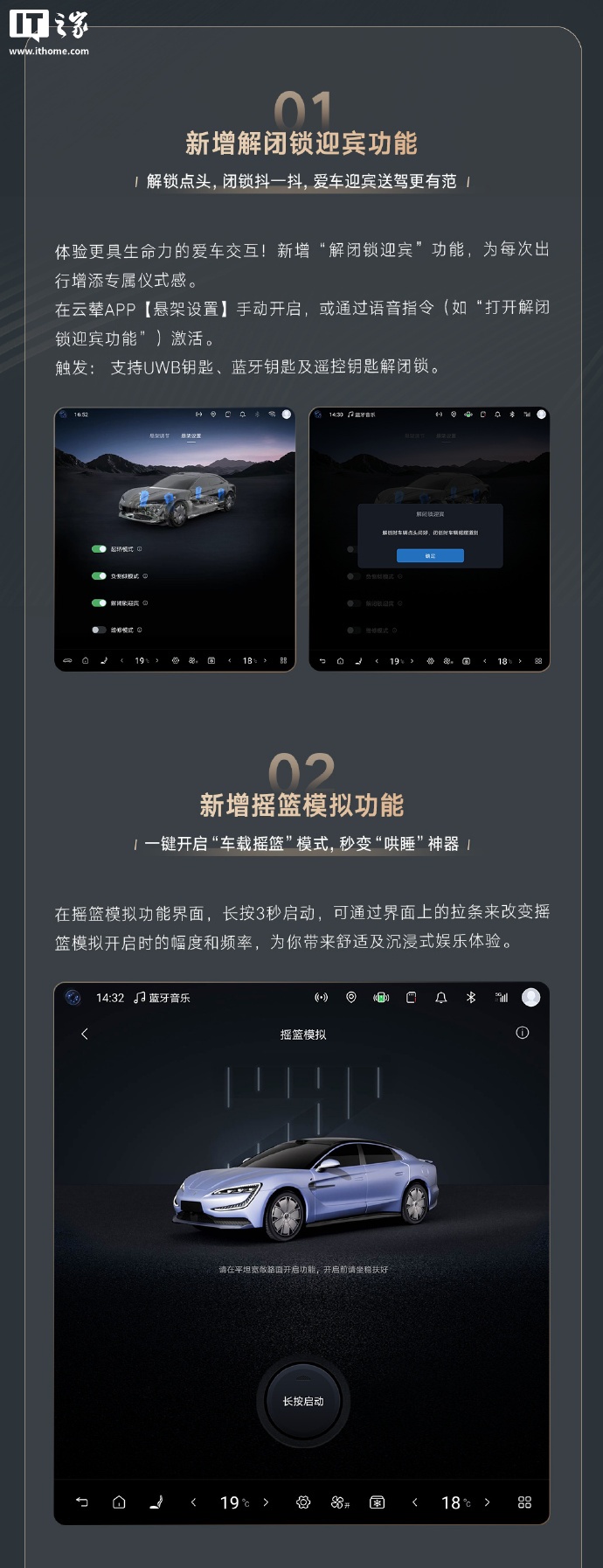 可在云辇 App“悬架设置”手动开启,或通过语音指令(如“打开解闭锁迎宾功能”)激活。