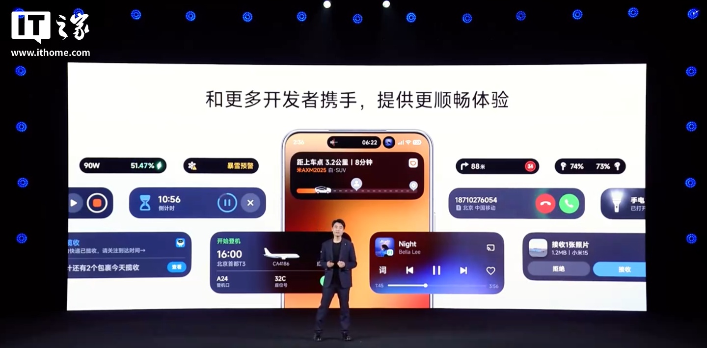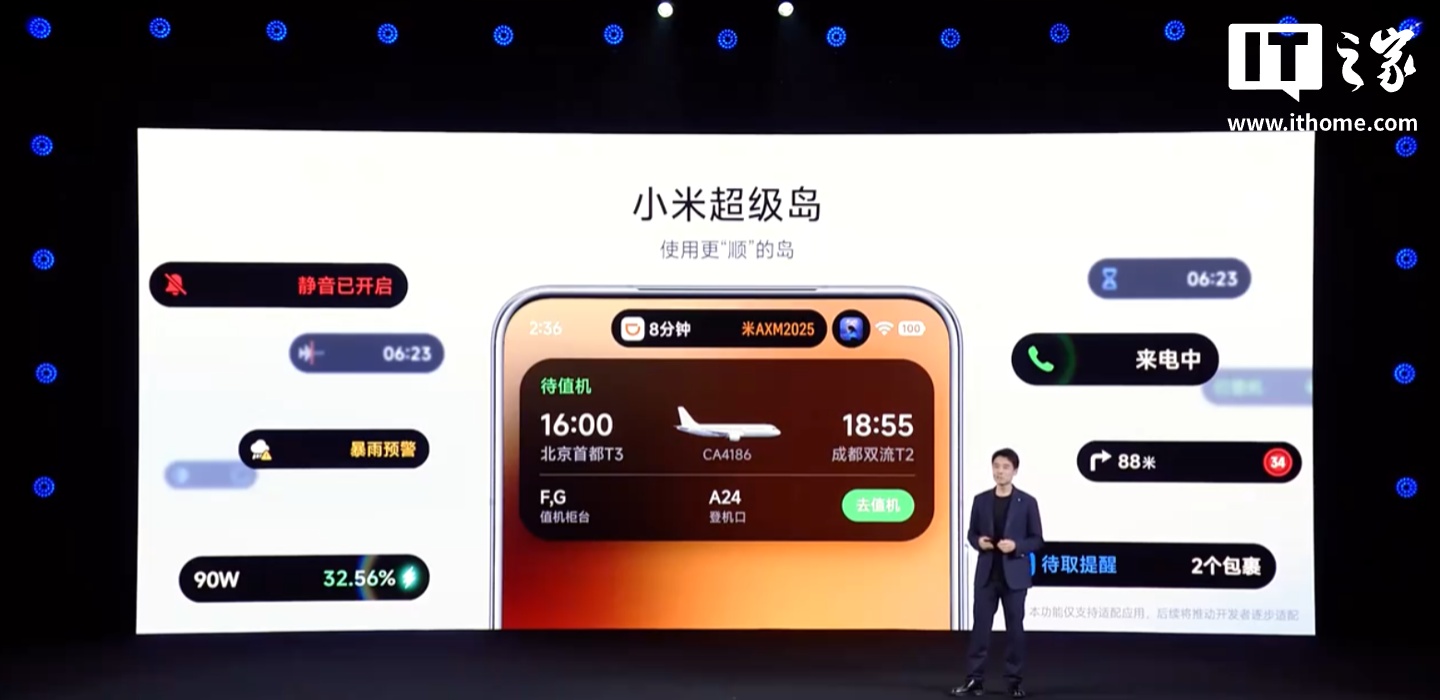 IT之家 8 月 28 日消息,在今天的小米澎湃 OS 3 发布会上,小米产品总监 MIUI /HyperOS 体验总负责人金凡宣布,澎湃 OS 3 登岛,新功能命名为 —— 小米超级岛。