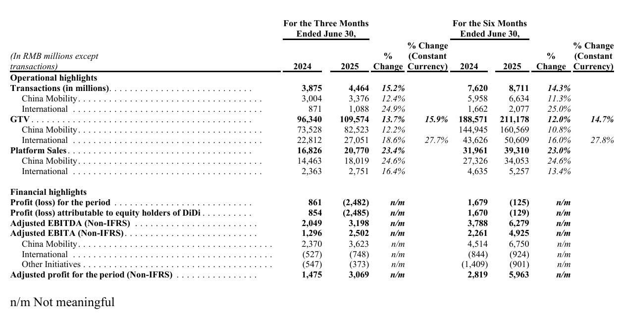 IT之家 8 月 28 日消息,滴滴今日在官网发布 2025 年第二季度业绩报告。进入千亿交易规模后,公司仍保持了双位数的增长。二季度,滴滴核心平台交易额(GTV)达到 1096 亿元,固定汇率下同比增长 15.9%。其中,中国出行 GTV 达到 825 亿元,同比增长 12.2%,国际业务 GTV 达到 271 亿元,固定汇率下同比增长 27.7%。