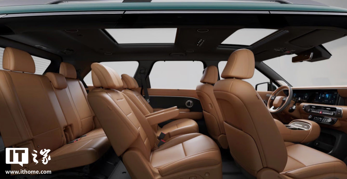 座舱方面,系列车型配备双 12.3 英寸悬浮式中控屏,换用“摩斯密码”方向盘,使用怀挡式换挡杆,提供第二排独立座椅、氛围灯、前两排座椅加热 / 通风、第三排座椅加热、第二排隐私窗帘、分体式天窗等配置。