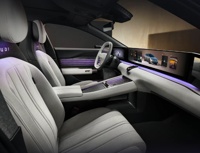 座舱方面,IT之家获悉该车配备 59 英寸贯穿式大屏,搭载高通骁龙 8295 芯片,应用 HMI 系统,提供拟态玻璃卡片、3D 专场、3D 壁纸等。匹配四辐式方向盘、怀挡式换挡机构、电子外后视镜,并集成盲区警示功能。