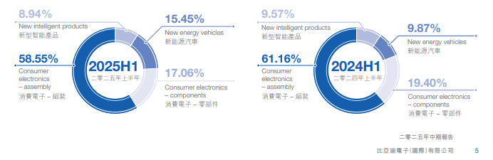 比亚迪电子表示,报告期内,本集团在消费电子业务领域录得 609.47 亿元收入,其中零部件收入约 137.52 亿元,组装收入约 471.95 亿元。新型智能产品业务录得收入约 72.09 亿元。