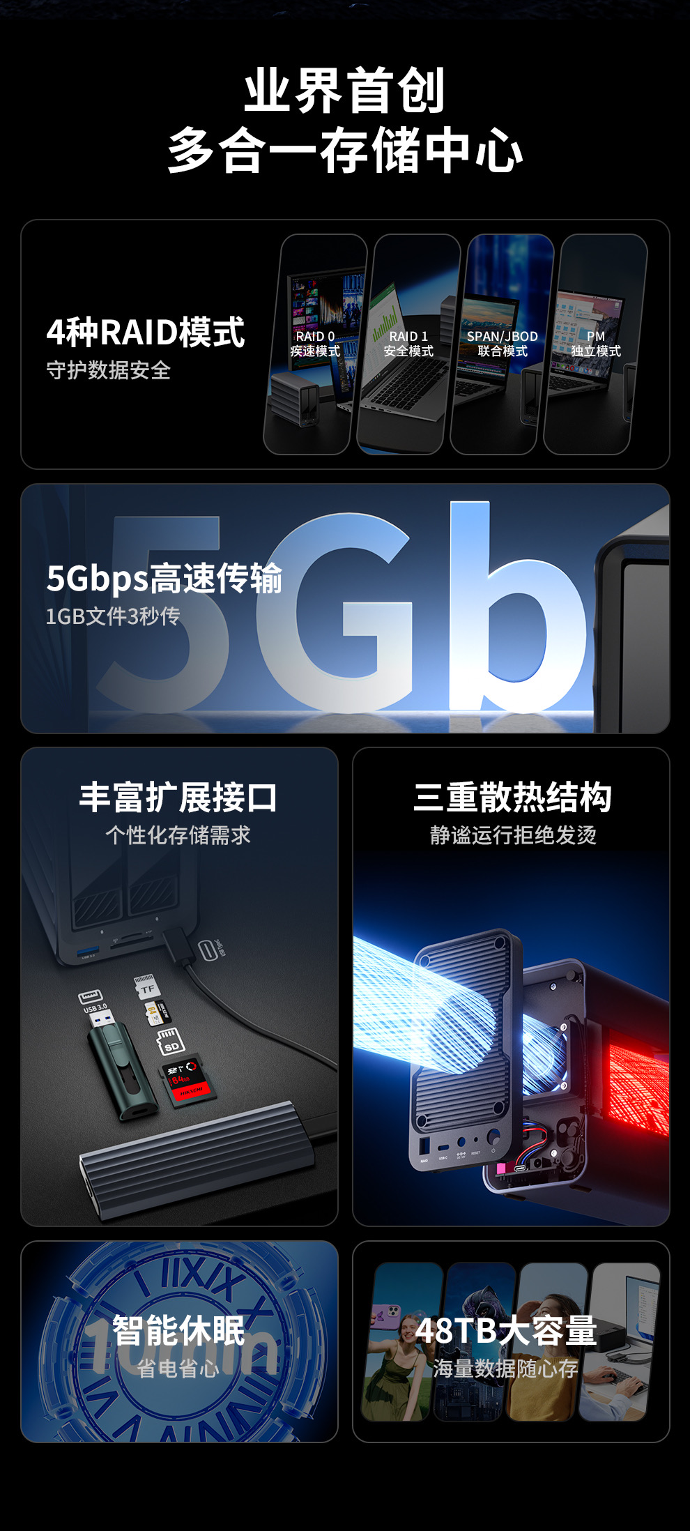 IT之家从官方介绍获悉,其支持 4 种 RAID 模式一键切换,可满足不同场景的使用需求。