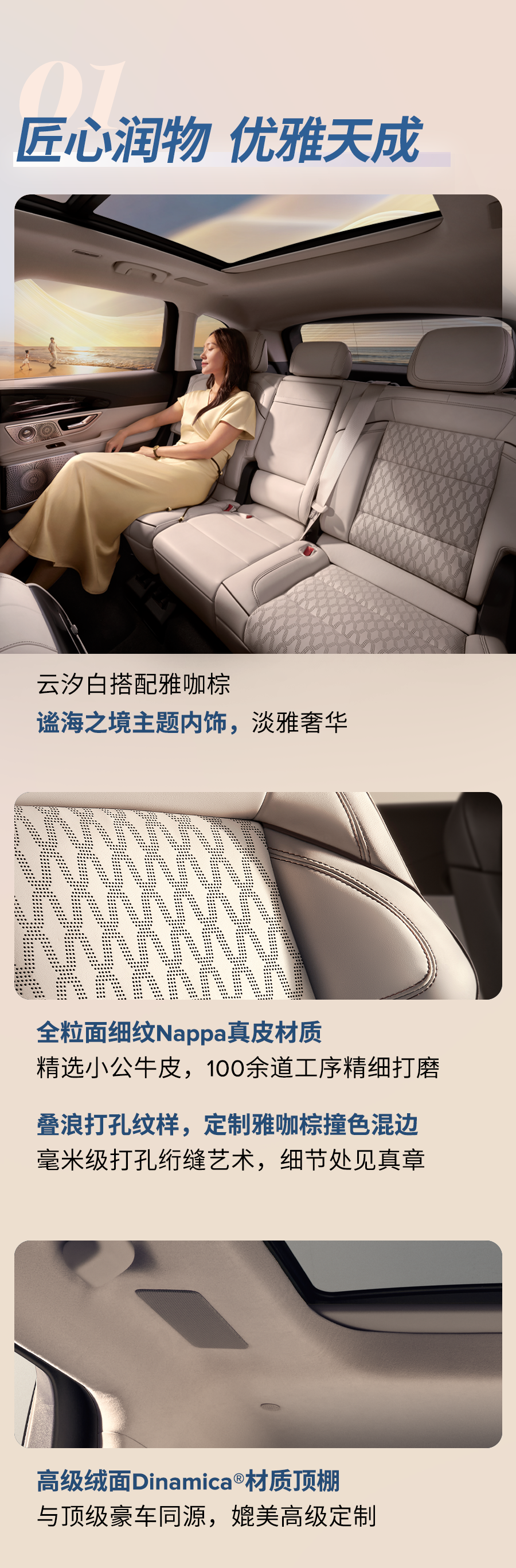 内饰方面,新车采用环抱式座舱设计,配备了 Nappa 真皮座椅,前排座椅 24 向调节、加热、通风和按摩功能。