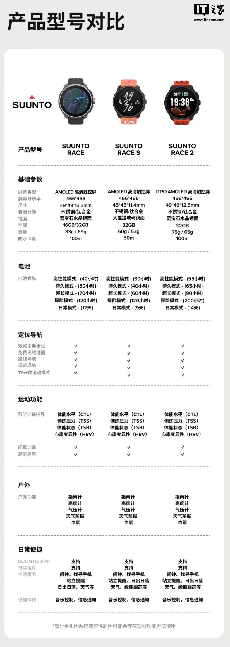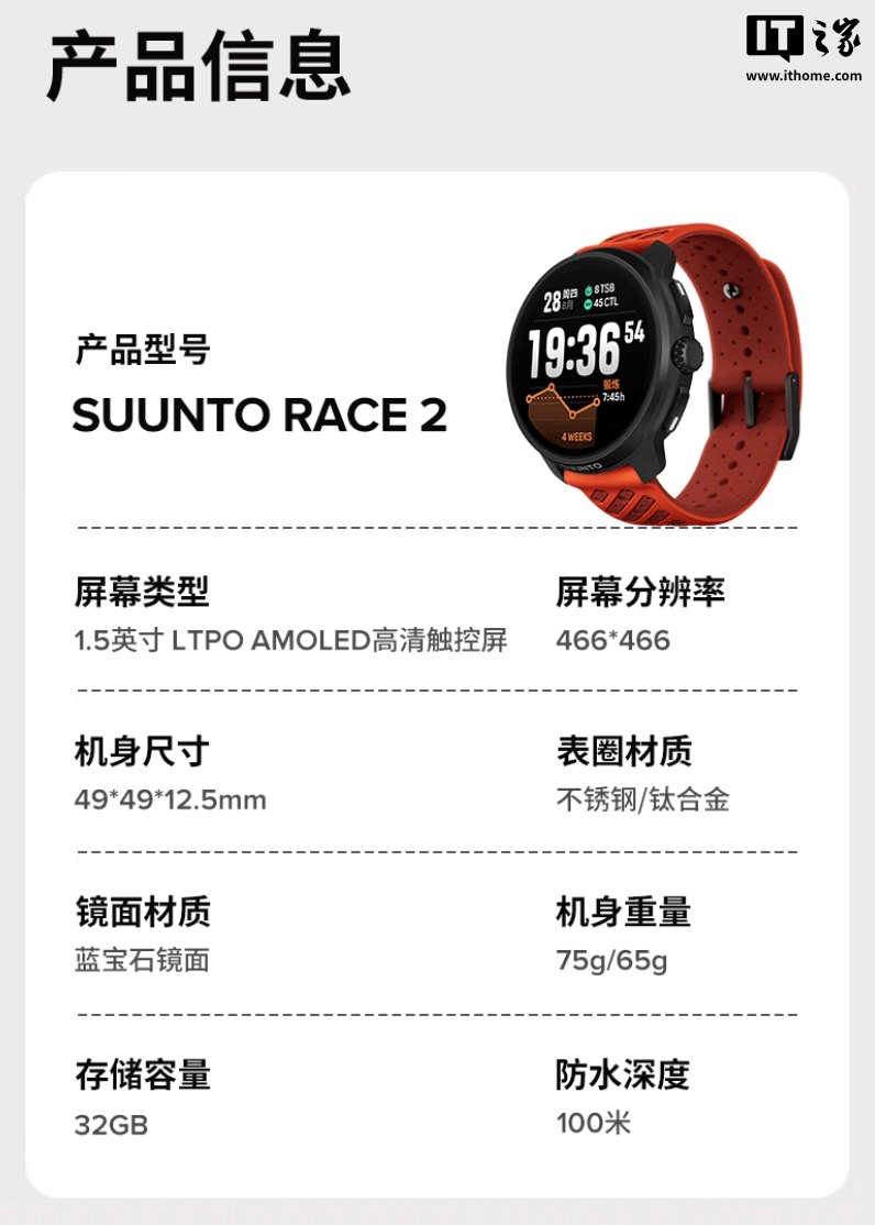 IT之家 8 月 31 日消息,颂拓现已推出一款 SUUNTO RACE 2 智能手表,其中精钢版定价为 3999 元,首发价 3849 元;钛合金版定价为 4599 元,首发价 4449 元。