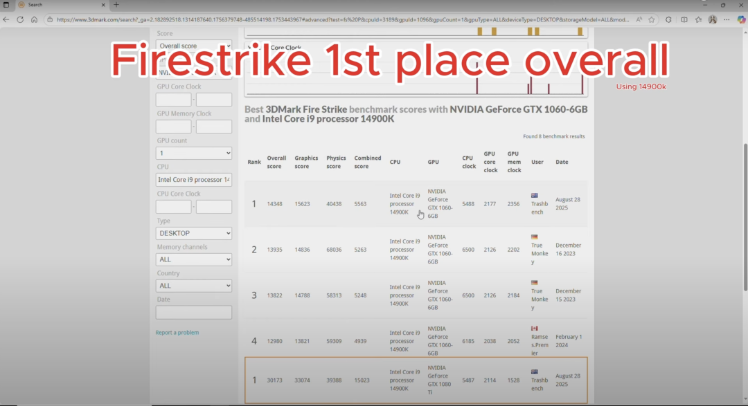 而在显卡性能测试基准 3DMark Firestrike 上,更是干到了全球第一 —— 直接惊呆一众网友!