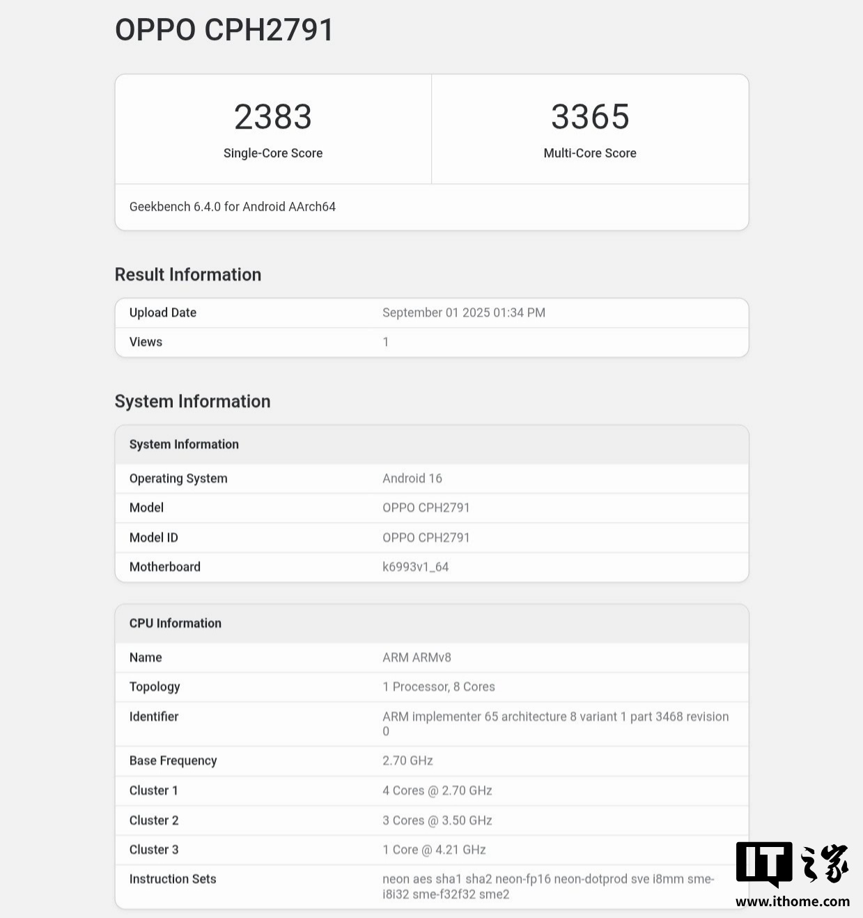 IT之家 9 月 2 日消息,昨天有一款型号为 CPH2791 的 OPPO 工程机出现在了 Geekbench 中,经 Abhishek Yadav 等人确认,这就是即将发布的 OPPO Find X9。