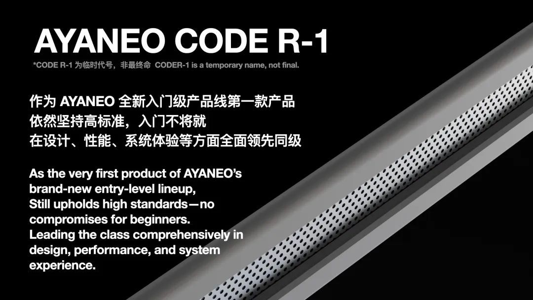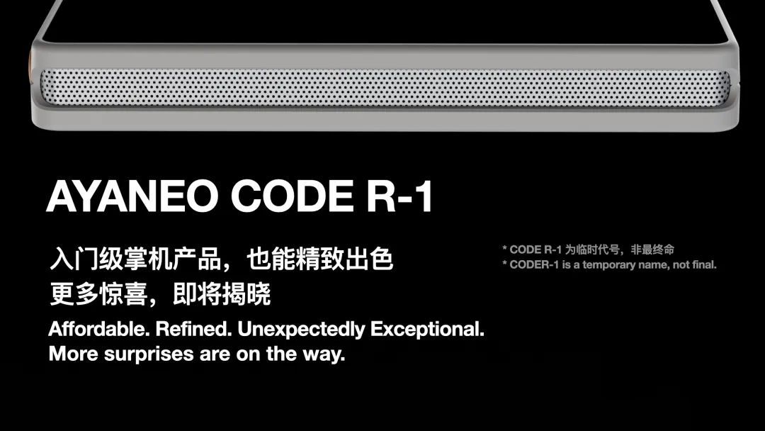 从表述上来看,Pocket AIR Mini 应该就是 AYANEO 今年七月末在 2025~2026 战略分享会上提到的临时代号为 CODE R-1 的产品,当时 AYANEO 也分享了 CODE R-1 的一些设计细节: