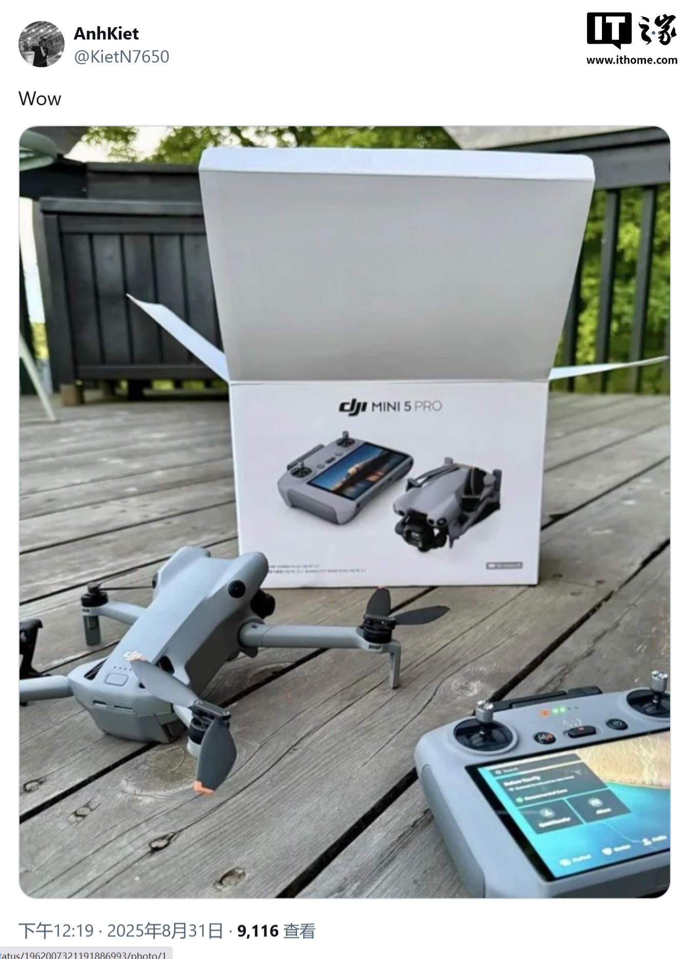 IT之家 9 月 3 日消息,消息源 Redhouse101gt 昨日(9 月 2 日)在 Reddit 社区发帖,分享了一组图片,展示了大疆 Mini 5 Pro 无人机和 DJI RC 2 智能控制器销售套装,并确认搭载 1 英寸传感器,支持 4K / 120fps 慢动作视频,配备前向 LiDAR 传感器实现 360 度避障。