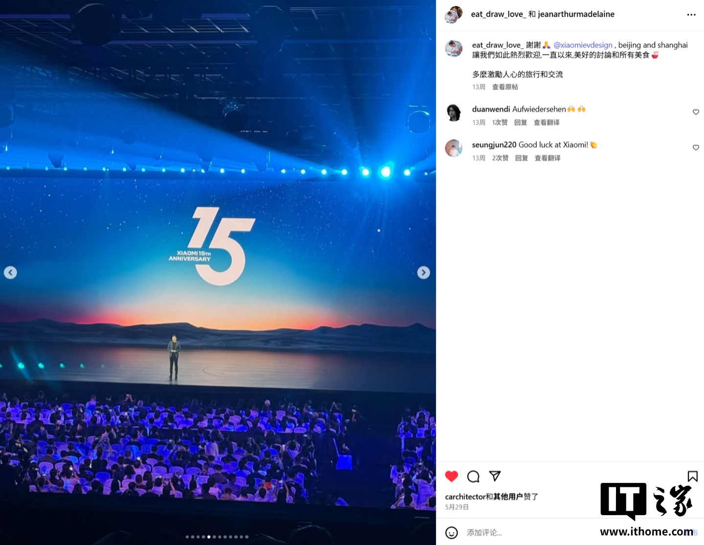 值得注意的是,这名设计师曾在 Instagram 分享道,今年 5 月末他到访北京、上海,出席了小米 15 周年战略新品发布会,走访了多个小米汽车体验中心。