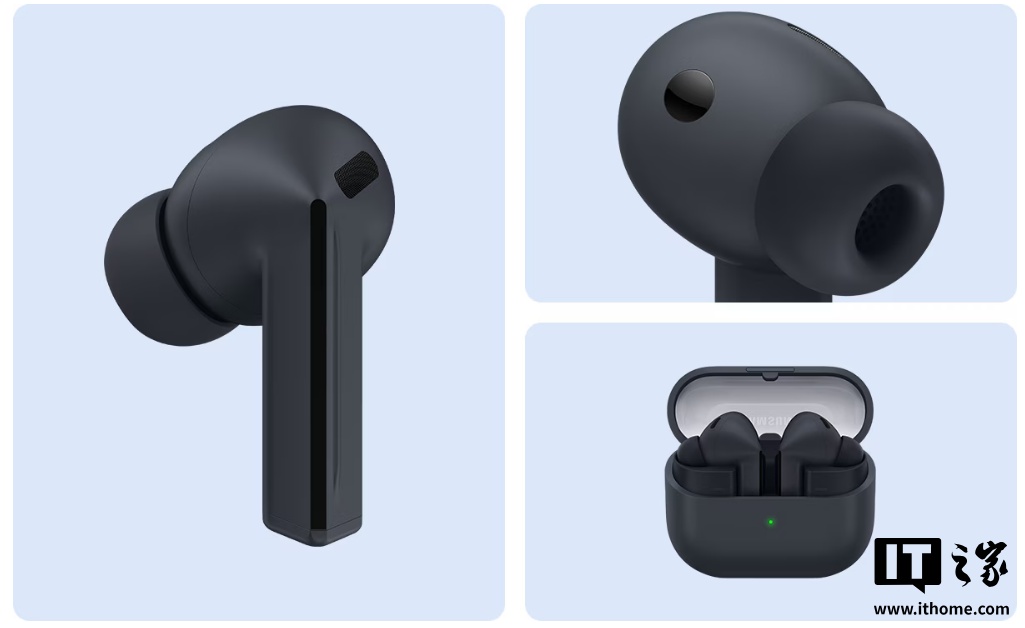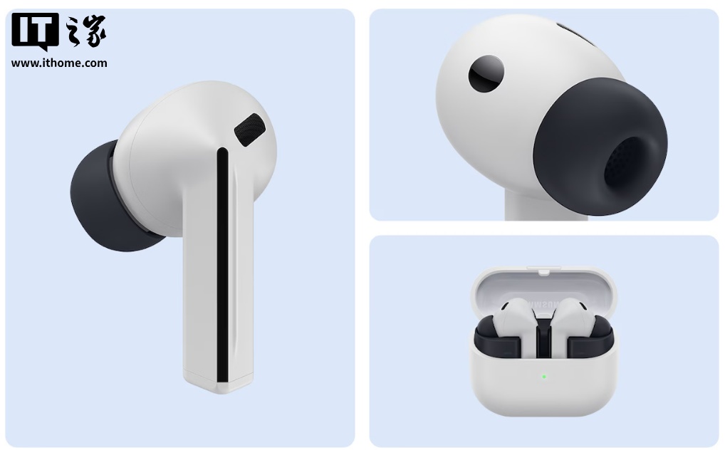 该耳机可选暗羽黑、银雾灰两款配色,是三星最亲民耳机 —— Galaxy Buds FE 的继任者,采用了全新“柄状”造型,外观更接近 Galaxy Buds3 和苹果 AirPods。