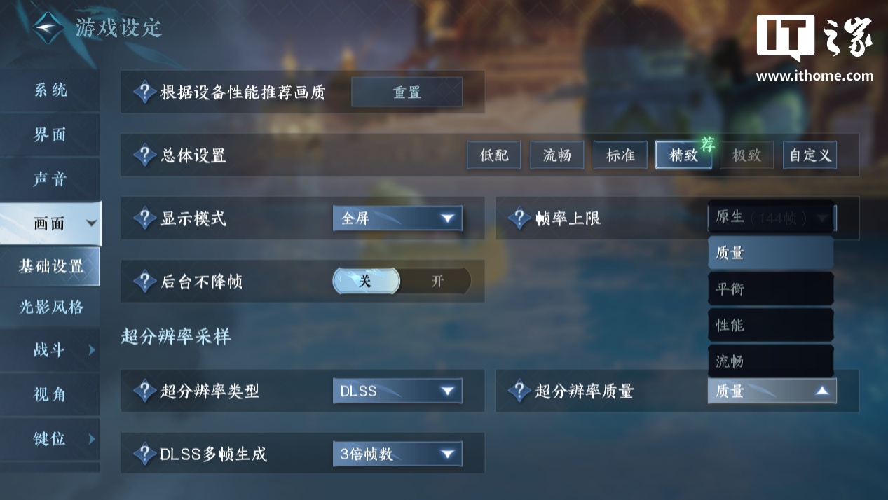 超分辨率质量现在提供了原生、质量、平衡、性能和流畅 5 种档位可选。