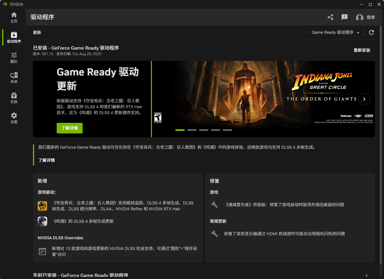 测试之前,我们将 NVIDIA 显卡驱动更新到了 581.15 版本,以下所有测试均基于该版本驱动进行。
