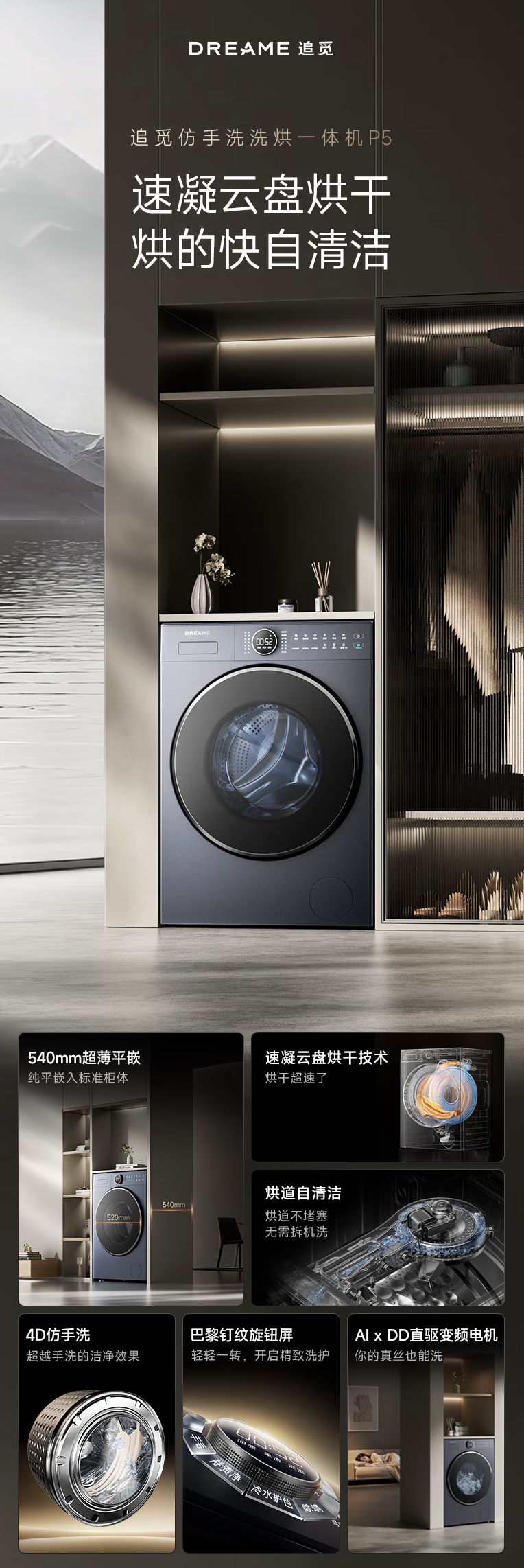 IT之家 9 月 6 日消息,追觅宣布进入洗衣机市场,目前其已在京东上架一款型号为 P5 的洗烘一体机,其主打“540mm 超薄平嵌”,首发价 5499 元,将于 9 月 9 日开启预售。