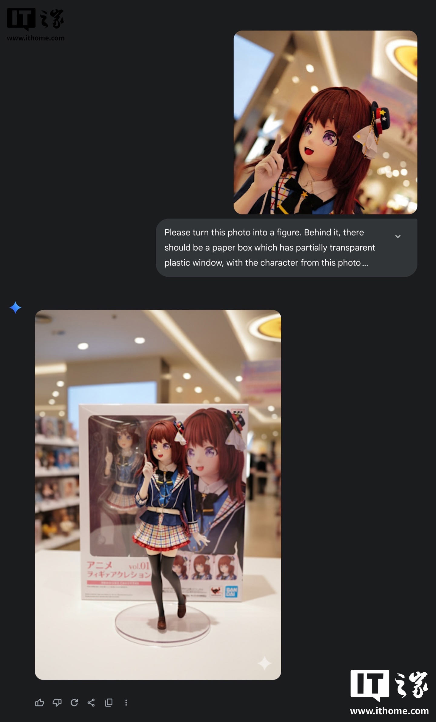 IT之家 9 月 6 日消息,继 ChatGPT 掀起“吉卜力、像素风”AI 生图热潮后,近期海外出现利用 Gemini 2.5 Flash Image(代号 Nano Banana)AI 模型“照片模型手办化”玩法。