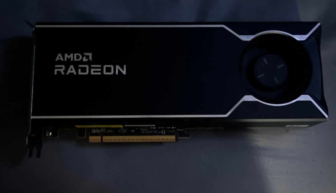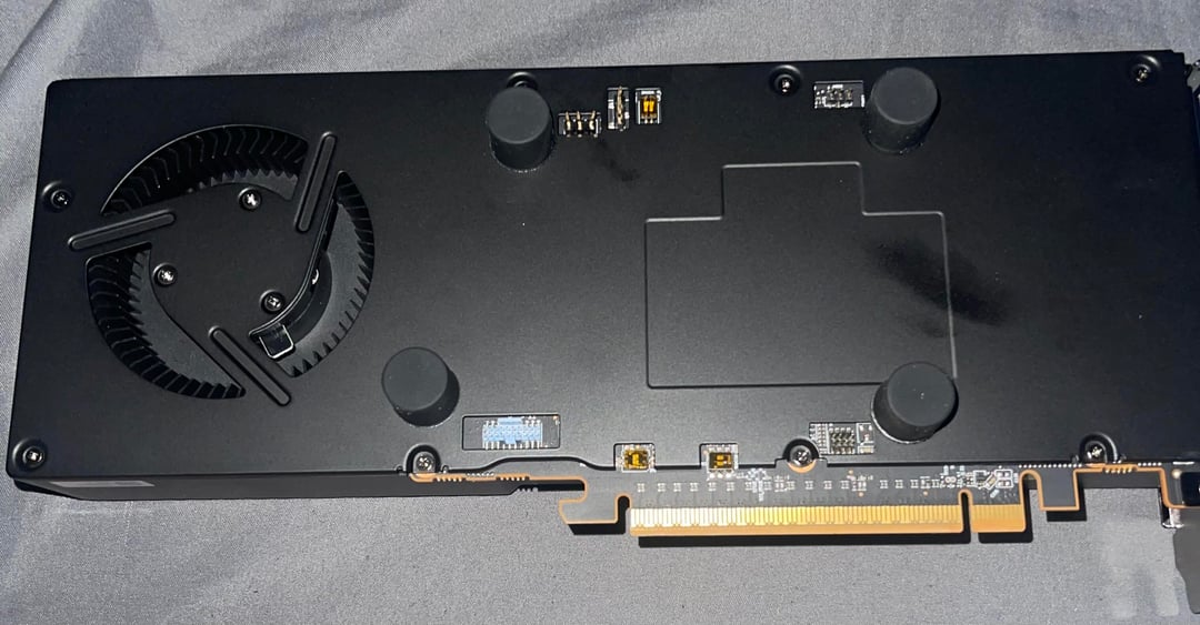 而从散热器形制、标签上的 (Navi 48) "XTW" GPU 变体编号来看,这张原型显卡对应的就是实际推出的 Radeon AI PRO R9700 专业显卡。