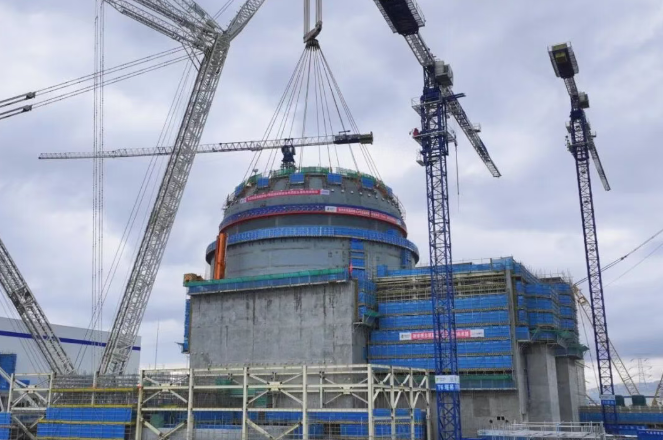 IT之家 9 月 7 日消息,据山东核电有限公司消息,9 月 6 日 13 时 59 分,海阳核电 4 号机组核岛钢制安全壳顶封头模块吊装就位。顶封头是反应堆厂房的最后一个模块,吊装就位标志着核岛主要设备和模块已基本引入完毕,自此反应堆厂房雏形已现,核岛施工由土建转入安装阶段。