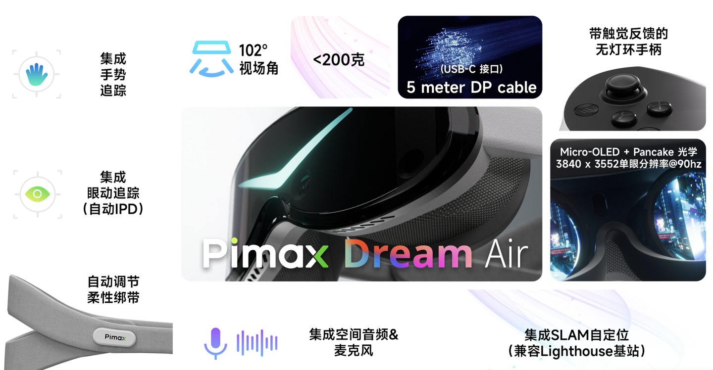 而 Dream Air SE 主打平价设计,整机重量低于 200g,同样支持自动调节头戴绑带,配备了单眼 2560x2560 分辨率 Micro OLED 面板,预定价格 4845 元起。