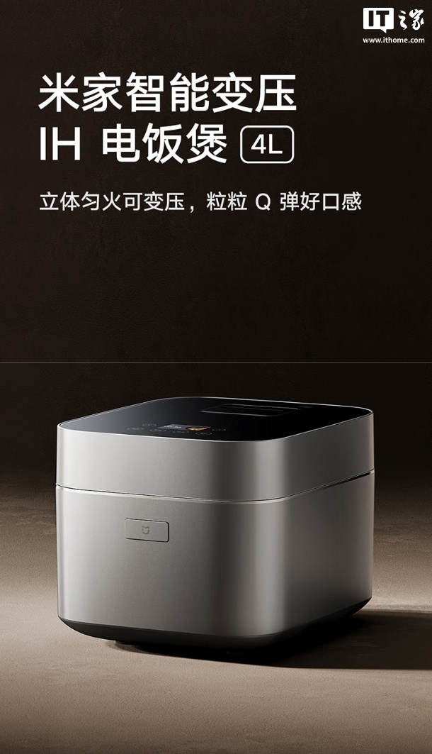 IT之家 9 月 8 日消息,小米今天发布了米家智能变压 IH 电饭煲 4L,可供 4-5 人家用,主打立体匀火可变压、IH 球形包裹加热,预售价 1999 元。