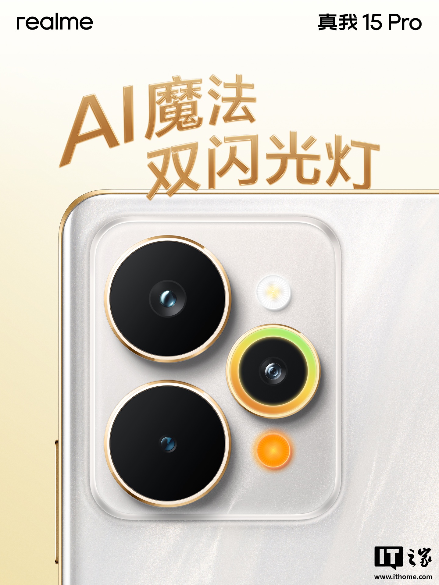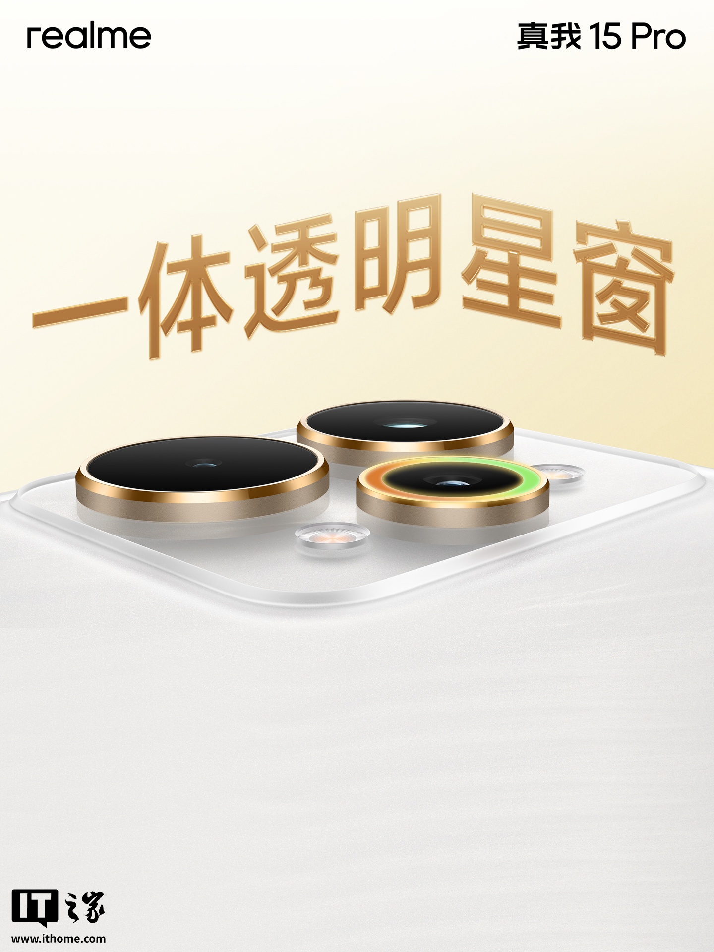据介绍,真我 15 Pro 手机首创流光晕染工艺,采用一体透明星窗 Deco 设计,配备觉醒光环系统 + AI 魔法双闪光灯(两颗闪光灯)。