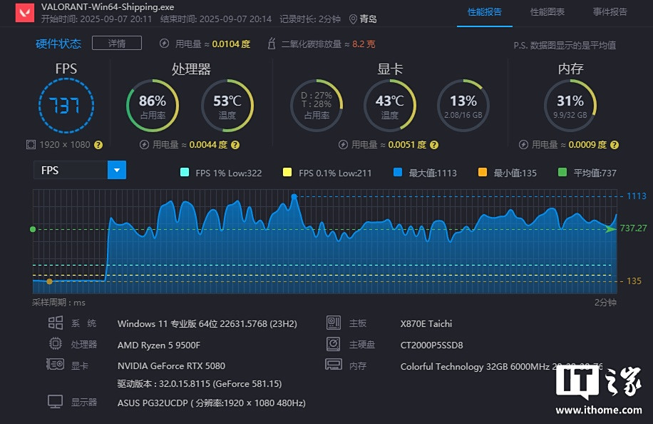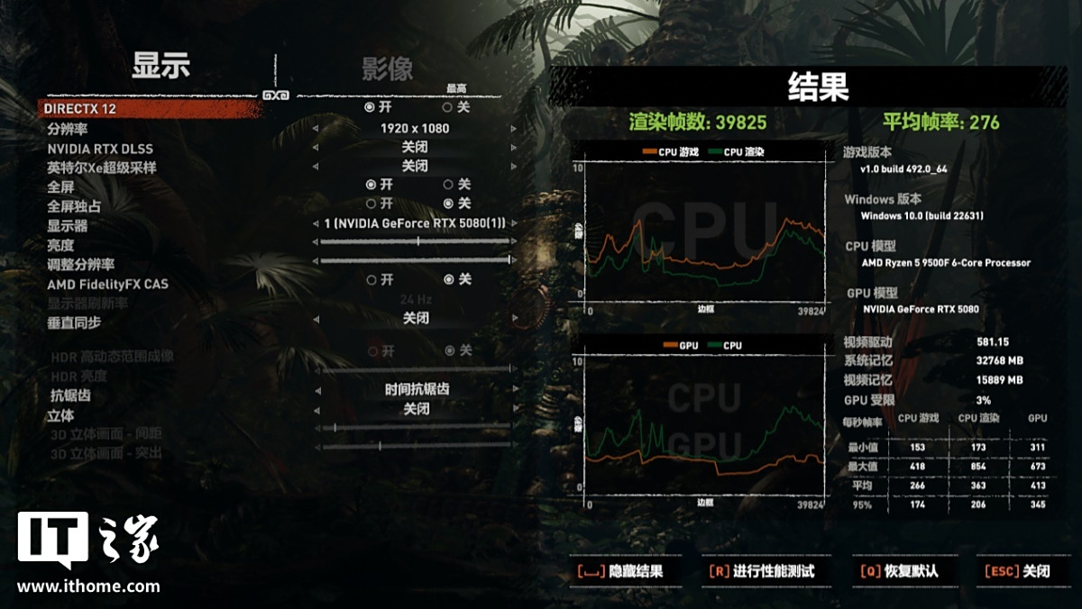 先交代一下测试环境,IT之家本次评测基于 Windows 23H2 系统版本和 581.15 NVIDIA 显卡驱动版本,并打开两台机器主板 BIOS 中的自动 PBO 和性能模式选项,一切测试结果以此系统和驱动版本为准,测试默认采用 1080P 分辨率 + 高画质,如有其它设置会进行说明。