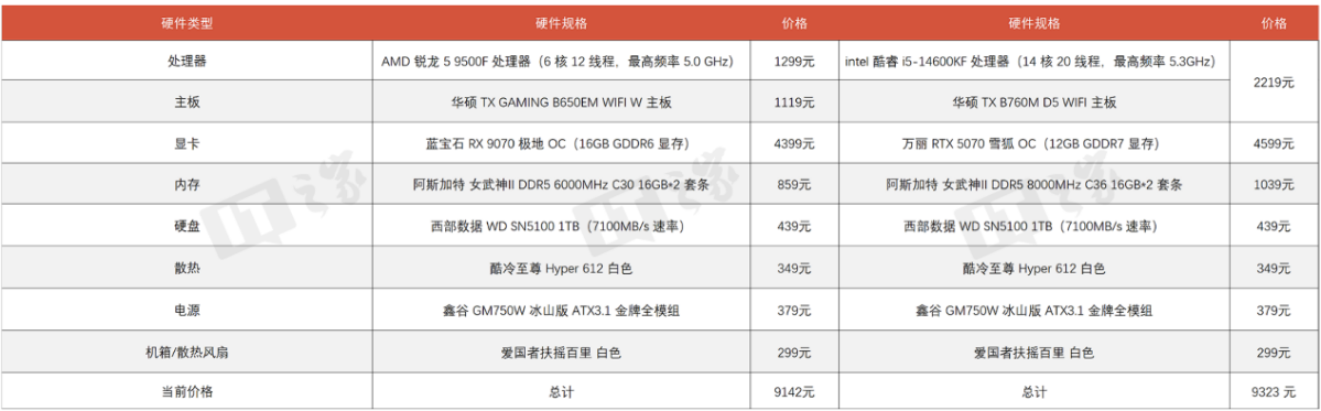 如果将两套配置的显卡换成相同型号,总价差距也只有十几元,但锐龙 5 9500F 处理器依旧能凭借更强的游戏性能,获得更好的质价比。相信看到这里,近期有装机需求的小伙伴们应该知道如何选择了。