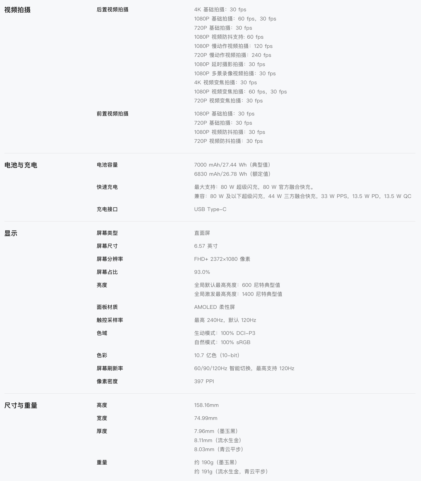系列手机厚度薄至 7.96mm,重量轻至 190g,提供“墨玉黑”、“流水生金”、“青云平步”3 款配色可选,其配备一块 6.57 英寸 2372×1080 OLED 直屏,号称“同档唯一小直屏”,匹配 16MP 自拍摄像头,后置 50MP 主摄 + 2MP 景深双摄。