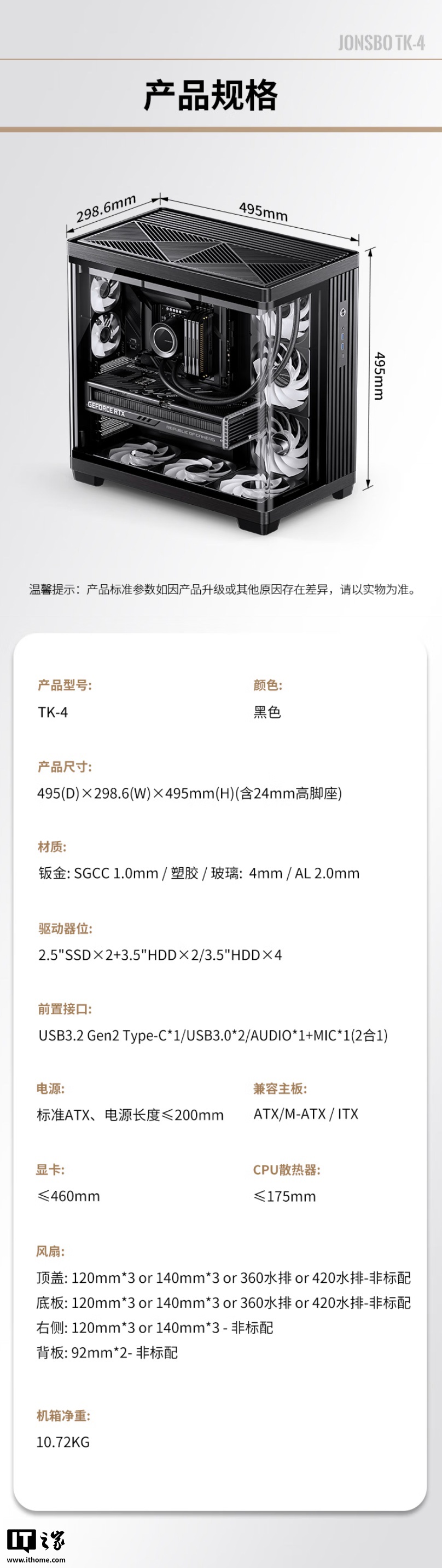 IT之家 9 月 9 日消息,乔思伯 TK-4 机箱现已在京东上架,目前暂仅提供黑色版本,定价为 899 元。