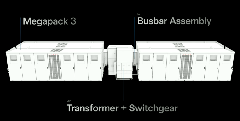 不过,此次发布中更受关注的产品当属 Megablock。该产品将四个 Megapack 3 单元直接与兆伏级变压器及开关设备整合,其外观如下: