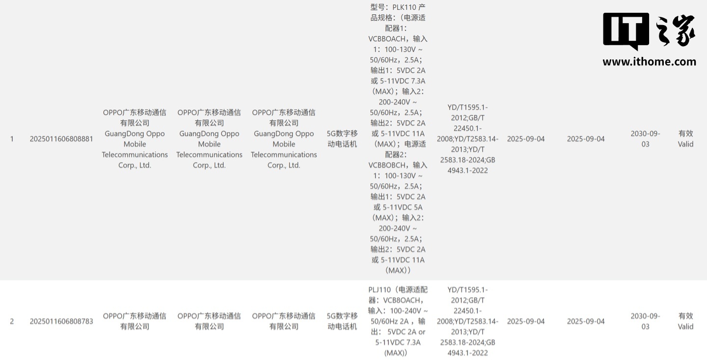 同时,型号为 PLK110 的一加新机已于 9 月 4 日通过 3C 认证,配有 120W 充电头。