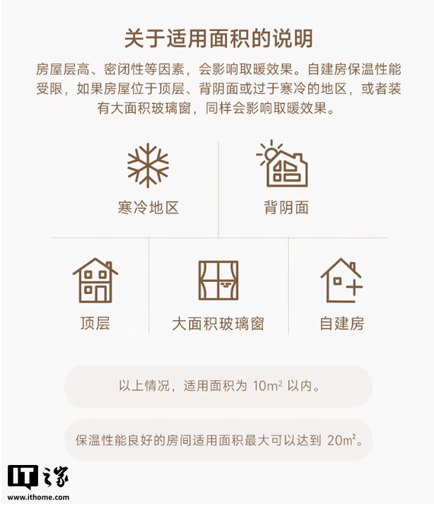 IT之家附该电暖器适用面积说明如下: