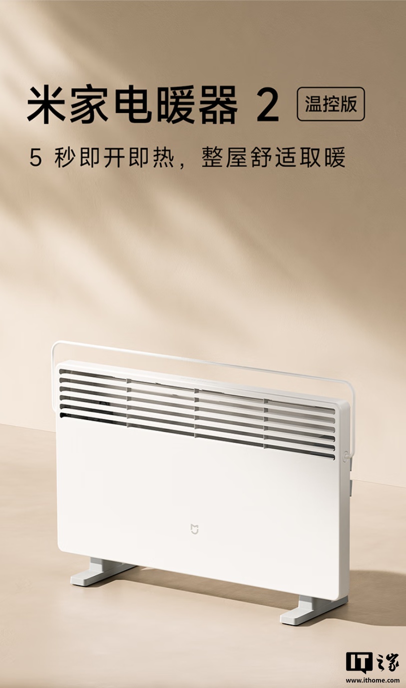 IT之家 9 月 9 日消息,小米今天发布了米家电暖器 2 温控版,主打 5 秒即开即热、2200W 功率,售价 309 元。