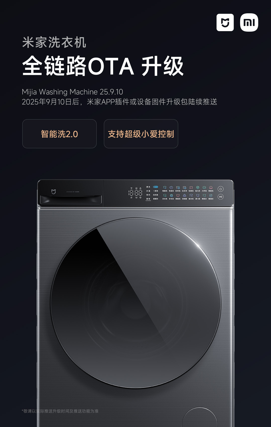 IT之家 9 月 11 日消息,小米智能生态宣布,米家洗衣机本月全链路 OTA 升级今日起陆续推送,版本号为 Mijia Washing Machine 25.9.10。