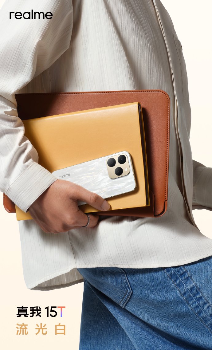 IT之家 9 月 12 日消息,realme 今日公布真我 15T 手机三款外观配色,分别为流光白、夜光蓝以及魅影黑,新机将于 9 月 16 日 19:00 发布。这款新机采用“真我首款优雅大 R 角设计”,配备极简金属 Deco。