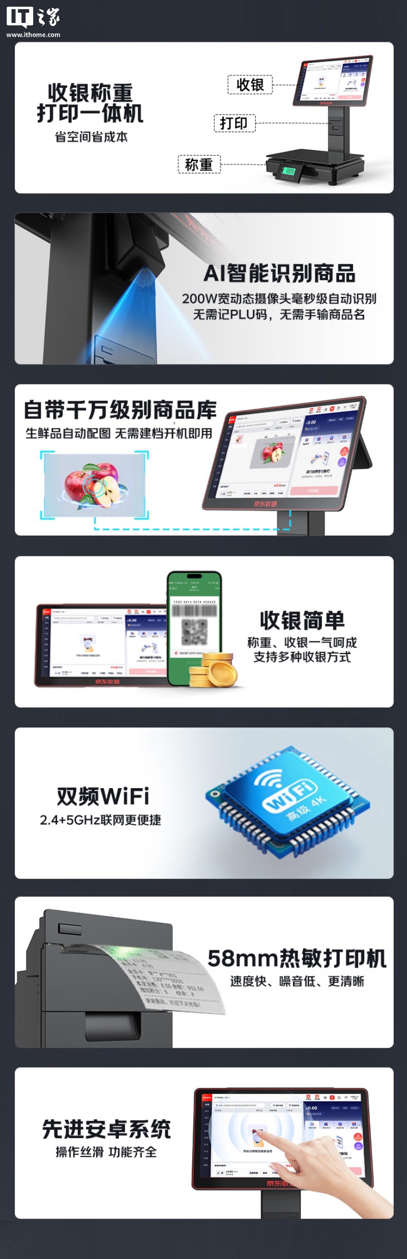 据介绍,该机目前实际已在京东上架,定价为 2499 元起,其引入 AI 识别系统,利用屏幕下部 200 万像素 HDR 摄像头对物品进行扫描确定商品种类,并配合称重结果,对不同商品输出不同价格结果。