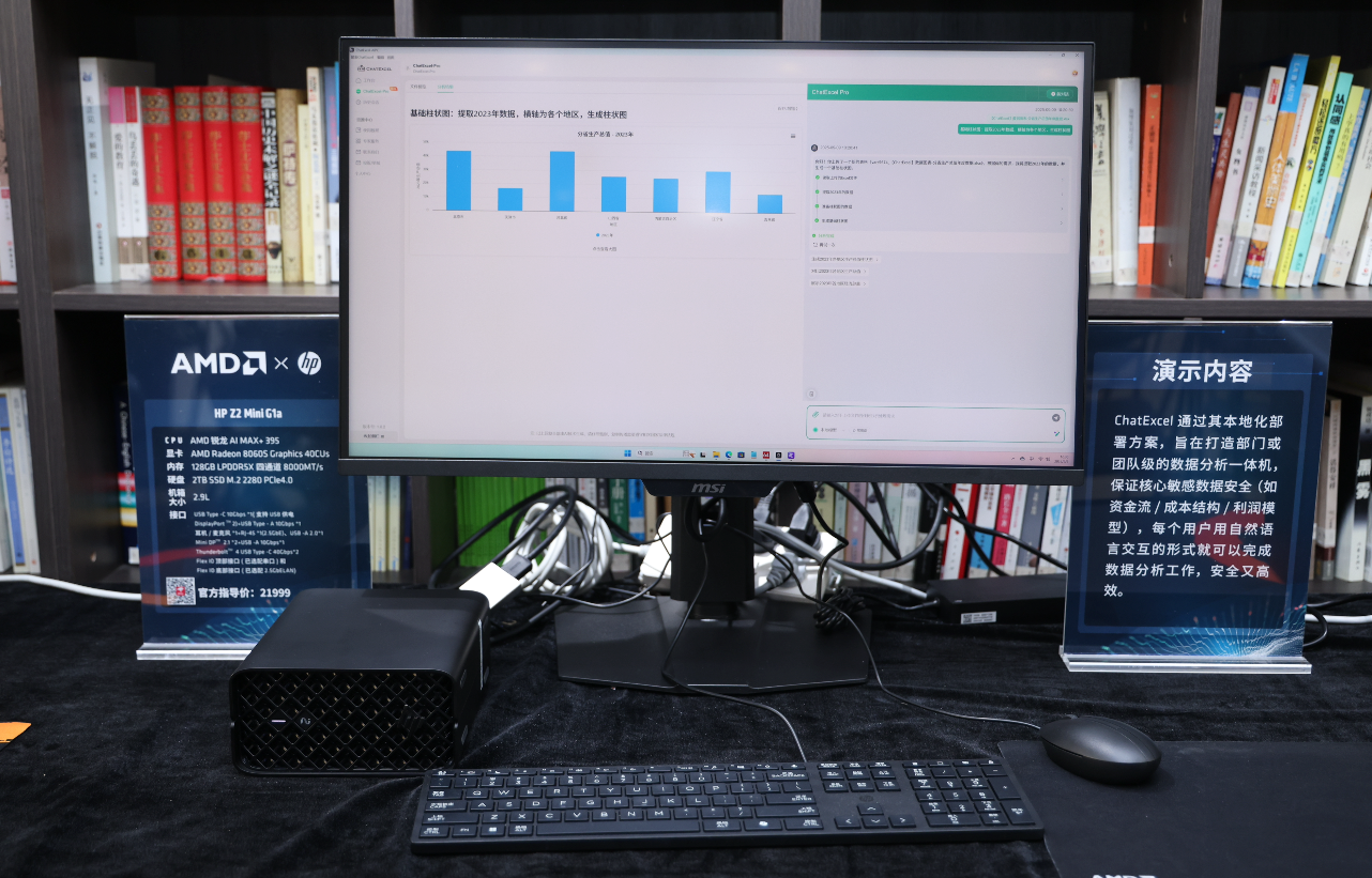 而对于中小企业与团队来说,目前众多搭载锐龙 AI Max+ 395 的 Mini AI 工作站产品问世,也可以为他们解决许多业务发展初期的问题,例如 AMD 的 AI 应用生态伙伴通过本地部署一个基础大语言模型加专业数据处理算法的形式,就能为企业提供全链路的数据分析智能体,用户只需通过自然语言提问即可完成数据处理与可视化。还可以利用 RAG 技术,将企业内部的产品文档、业务数据转化为一个随时可供查询的“产品专家”。对于制造业,它可以高效完成数千个组件的 Bom 批量分析;对于 HR 部门,它可以从上千份简历中精准筛选出合适人选。