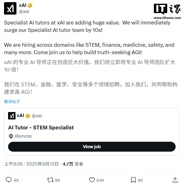 xAI 通过电子邮件通知员工,公司计划缩减通用型 AI Tutor 岗位,并将战略重点转向“专业型 AI Tutor”。