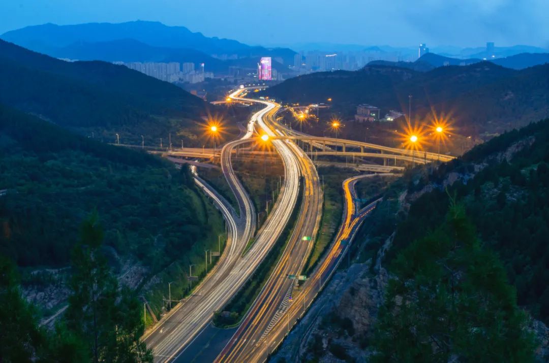 建议在天还没有完全黑下来时拍摄,这时候车灯已经打开了,可以拍摄到车轨。同时,由于天没完全黑,环境的光比很小,无论是亮的地方还是暗的地方,都能保留住细节。