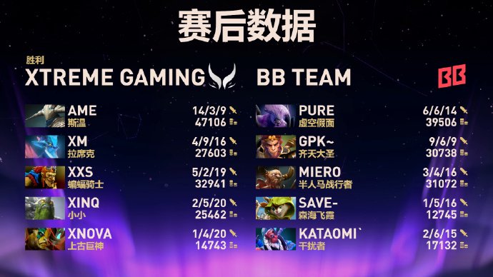 IT之家 9 月 14 日消息,《DOTA2》TI14 主赛事昨晚继续进行,中国战队 XG 在掉入败者组的情况下,连续战胜 Nigma、BB 战队,成功晋级败者组决赛并确保赛事前三。XG 战队今日 16:00 将迎战 PVISION 战队,胜者将与 Falcons 争夺本届赛事总冠军。