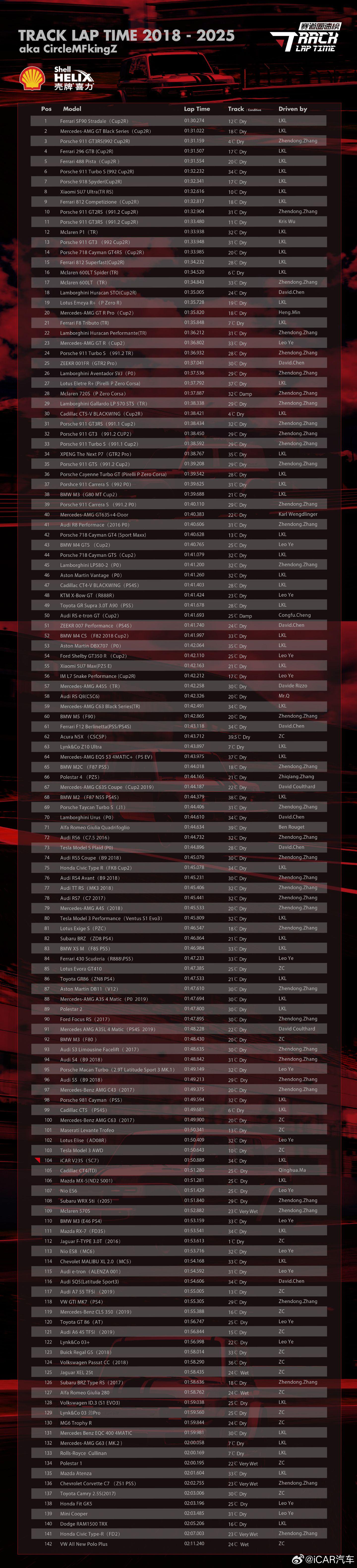 2018-2025 浙赛各车型单圈成绩榜: