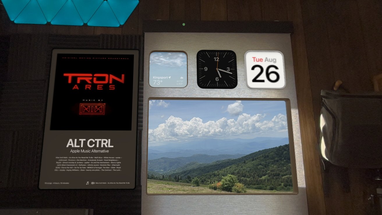 本次更新最值得关注的改进,就是空间小组件(spatial widgets),让用户以小组件形式,在现实空间的任意位置固定天气、音乐、照片等应用,即使关机也会保持原位,并可设定仅在当前房间可见。